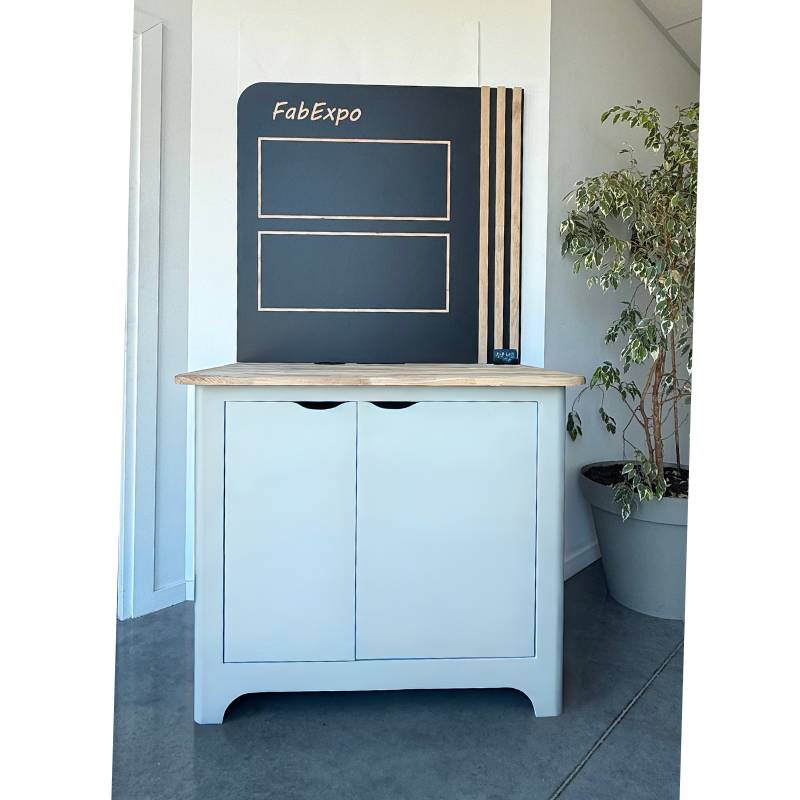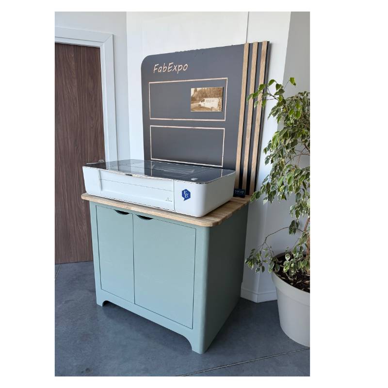 Le meuble FABEXPO est conçu pour optimiser les espaces numériques. Disponible en trois tailles M, L et XL, il s’adapte à vos machines (découpeuses, graveuses, etc.) et valorise votre atelier par son design pratique et personnalisable.