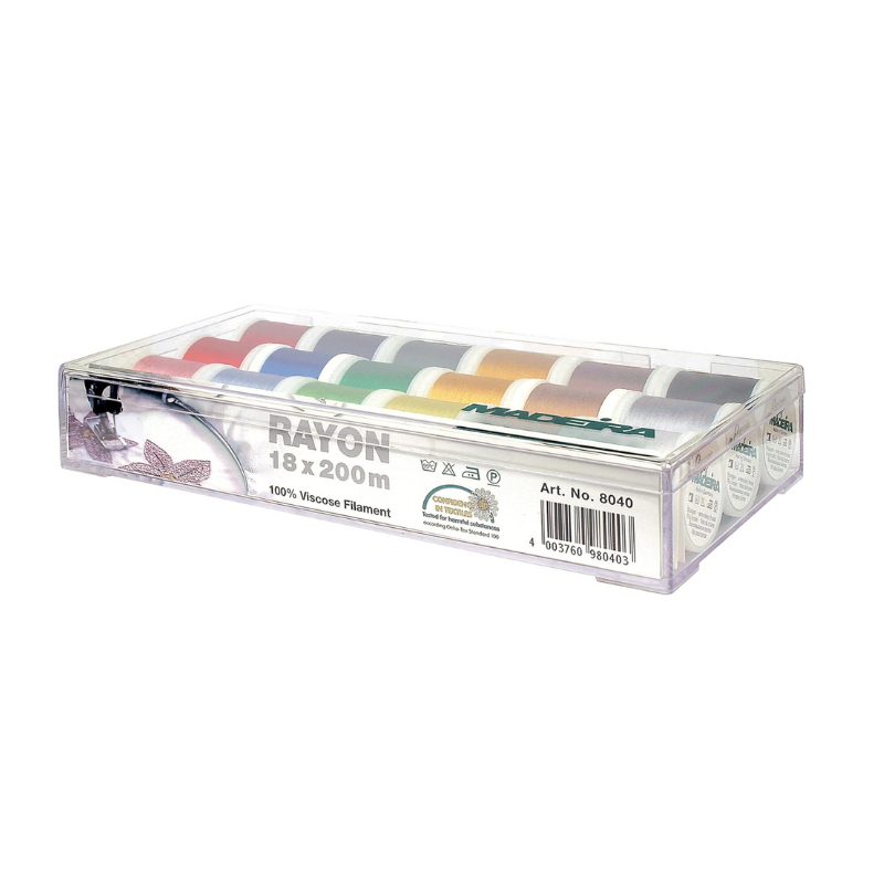 La fibre en viscose haute qualité de ce fil à broder Madeira assure une excellente tenue dans le temps et une finition lisse, idéale pour les motifs détaillés ou les aplats de couleur. Les 18 coloris soigneusement sélectionnés dans ce kit vous offrent une belle palette de départ pour vos réalisations textiles.
