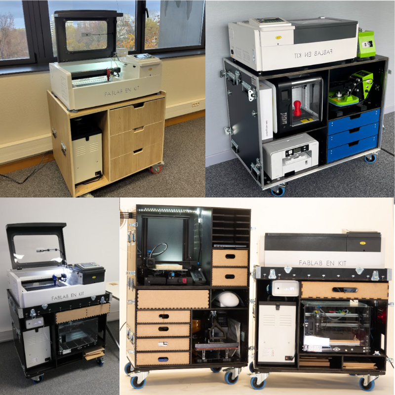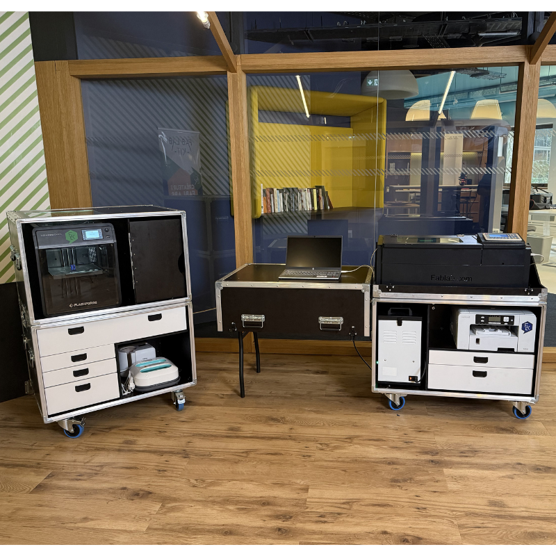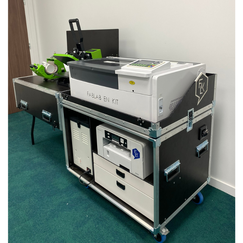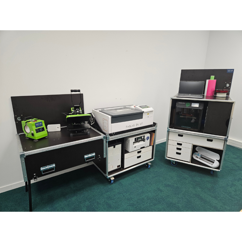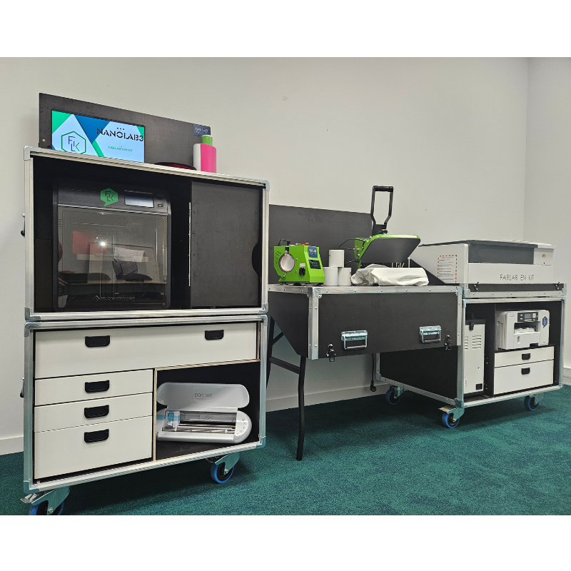 Le Nanolab3 est un Lab mobile tout-en-un. Il offre des outils de fabrication numérique modernes (imprimante 3D, découpe laser, presses à chaud, etc.) pour développer la créativité et les compétences techniques.