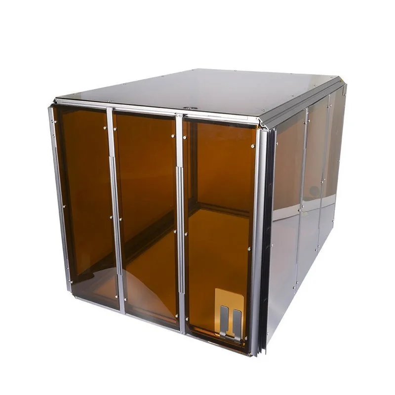 Sécurité & confort : caisson fermé (enclosure) en aluminium + panneaux acryliques, ventilation / extraction fumées pour laser/CNC, réduction du bruit — idéal pour un usage en atelier, en milieu éducatif ou même à domicile.