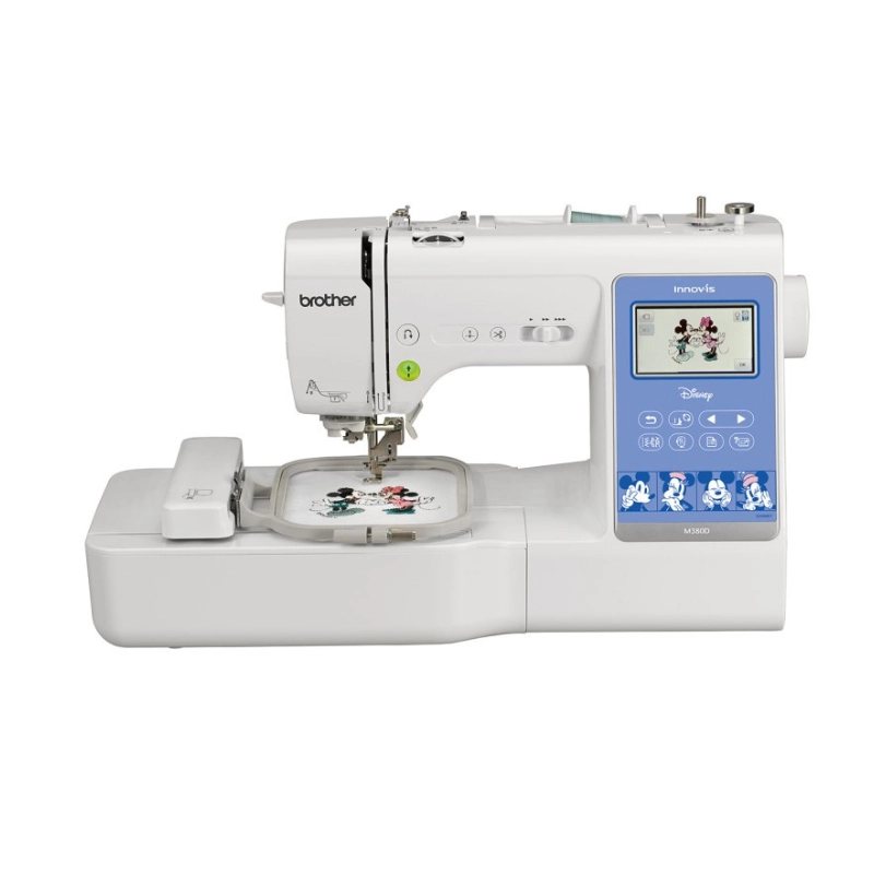Ce pack inclut la Brother Innov-is M380D, une brodeuse performante, parfaite pour les débutants comme pour les passionnés. Elle dispose de 200 motifs intégrés, dont 65 motifs Disney, ainsi qu’un écran tactile couleur de 9,4 cm qui vous permet de visualiser, modifier et personnaliser vos créations facilement.