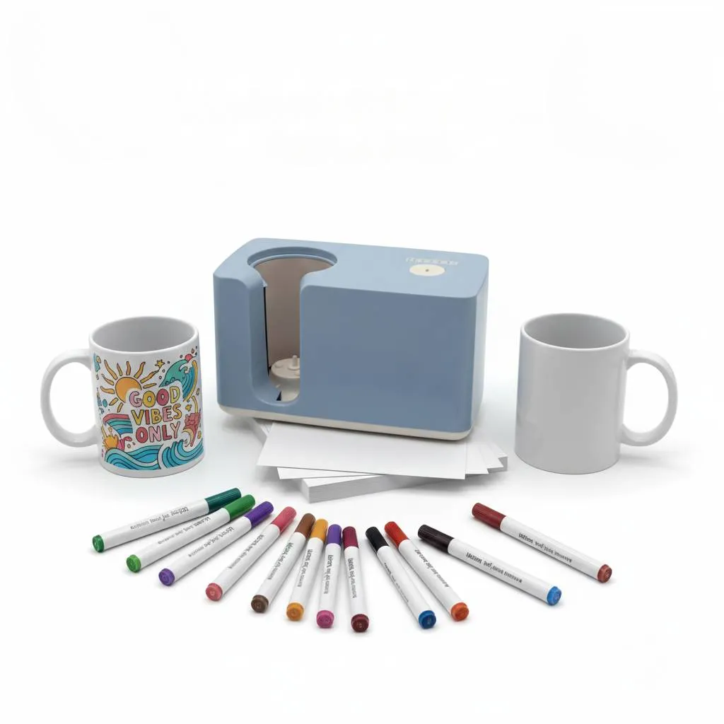 Le Starter Pack “Sublimation à la main” est la solution idéale pour se lancer facilement dans la personnalisation de mugs à la maison, à l’école ou en atelier. Ce kit complet réunit tout le nécessaire pour créer des objets uniques : dessinez vos motifs à main levée avec les feutres de sublimation inclus, transférez-les sur des mugs grâce à la presse automatique, et admirez le résultat ! Pensé pour les débutants, les animateurs ou les passionnés de DIY, ce pack permet de combiner créativité manuelle et rendu professionnel, sans avoir besoin d’imprimante à sublimation. Les feutres sont également utilisables avec d’autres types de transferts comme le bois ou les textiles.
