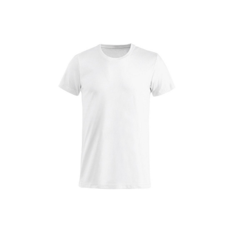 T-shirt coton blanc, manches courtes, surface idéale pour personnalisation.