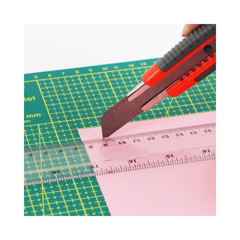 Ce tapis de découpe A3 est fabriqué en PVC auto-cicatrisant et est conçu pour résister aux coupures fréquentes tout en maintenant une surface lisse pour des découpes nettes et précises. Il est double face, avec des repères de mesures de chaque cotés, parfait pour des projets de couture, de bricolage ou de patchwork.
